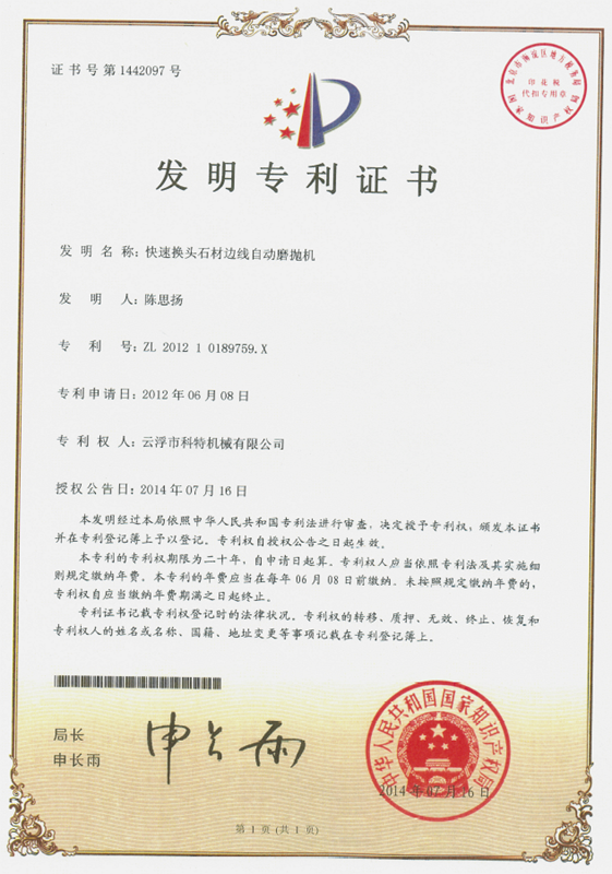 企業(yè)組建了“云浮市石材機(jī)械裝備工程技術(shù)研究開發(fā)中心”,并與高校和科研院所密切合作,致力于光機(jī)電一體化產(chǎn)品的研發(fā)、生產(chǎn)、銷售和服務(wù)。主要產(chǎn)品有框架鋸、全自動連續(xù)磨拋機(jī)、橋式自動切割機(jī)、全自動仿形石線機(jī)、數(shù)控金剛石繩鋸、裁切機(jī)等。產(chǎn)品具有自動化程度高、加工精度高和生產(chǎn)效率高等特點(diǎn)。產(chǎn)品除國內(nèi)銷售外,還出口到歐美、東南亞、韓國、印度、中東、非洲、俄羅斯、澳大利亞等國家和地區(qū),深受用戶好評。“橋式自動切割機(jī)”被認(rèn)定為廣東省高新技術(shù)產(chǎn)品,擁有發(fā)明專利1項(xiàng)、實(shí)用新型專利1項(xiàng)。
